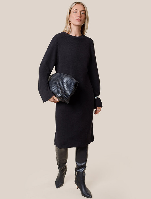 Vilatte Платье фактурной вязки из хлопка с кашемиром D32.105 черный