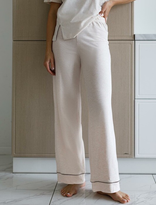 Совместные закупки Екатеринбург Женская одежда Домашняя одежда — Vilatte Прямые брюки из эластичного хлопка с контрастным кантом D44.120 бежевый
