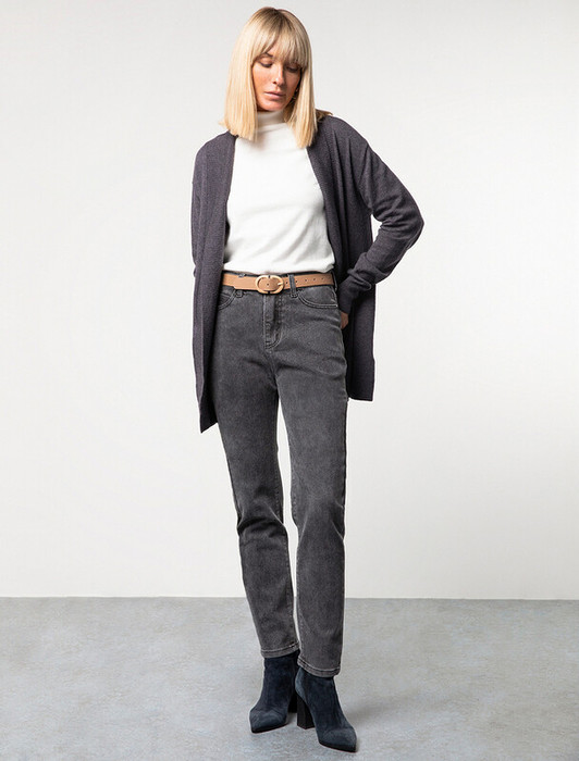 Джинсы  прямого силуэта сшиты из эластичного денима средней плотности. Универсальные и практичные для любого времени года с кроссовкамии, туфлями и сапогами. На верх с классической блузкой, водолазкой и свитером крупной вязки.