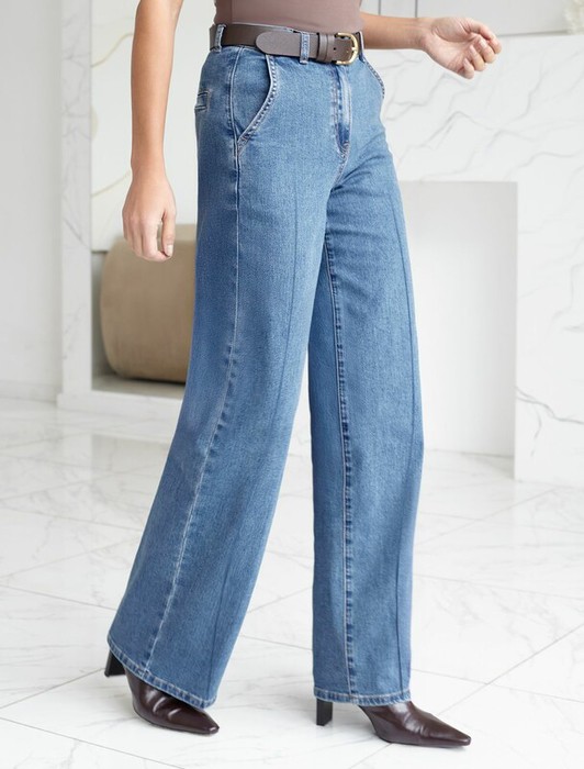 Джинсы трубы синего цвета со стрелками из эластичного денима — отличный выбор для тех, кто ценит стиль и комфорт в повседневной жизни. Благодаря стрелкам джинсы визуально вытягивают ноги, делая образ более изящным и аккуратным. Классический крой подходит на разные типы фигур и размеры, в том числе большие. За счет эластана модель отлично садится по фигуре, подчеркивая ее достоинства и создавая стройный силуэт, материал способствуют идеальной посадке по талии и бедрам, которая сохраняется даже после длительного ношения. Вы сможете выбрать джинсы,подходящие под свой рост: низкий или высокий. Джинсы подходят для разных случаев благодаря универсальному крою и лаконичному дизайну. Они легко комбинируются с разной верхней одеждой, позволяя создавать как повседневные, так и более официальные образы. Выбирая эти джинсы, вы получаете не просто одежду, а уверенность в своем стиле каждый день.