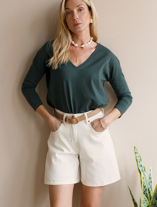 Vilatte Шорты из эластичного денима D58.024 белый