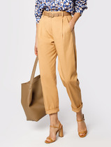 Брюки свободного кроя выполнены из эластичного футера-двухнитки. Модель дополнена защипами и боковыми карманами как у классических брюк и одним задним карманом. Эластичный пояс на резинке с шнурком из репсовой ленты и металлической фурнитурой. Брюки сочетаются в костюме с футболкой D49.031, D49.085, бомбером D49.038 и паркой D49.075