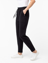 Брюки свободного кроя выполнены из эластичного футера-двухнитки. Модель дополнена защипами и боковыми карманами как у классических брюк и одним задним карманом. Эластичный пояс на резинке с шнурком из репсовой ленты и металлической фурнитурой. Брюки сочетаются в костюме с футболкой D49.031, D49.085, бомбером D49.038 и паркой D49.075