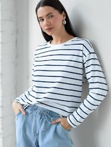 Vilatte Лонгслив с принтом из премиального хлопка с эластаном D49.148 белый-т.си