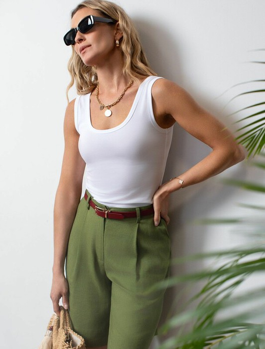 Совместные закупки Екатеринбург Женская одежда Майки, топы — Vilatte Топ облегающий из премиального хлопка с эластаном D43.238 белый