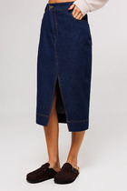 Vilatte Юбка карандаш металлик средней длины с разрезом из эластичного денима D5