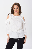 Совместные закупки Екатеринбург Женская одежда Блузки, рубашки — Vilatte Укороченная блузка из формоустойчивого хлопка D29.272 белый