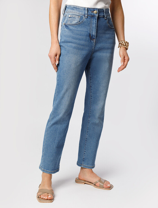 Джинсы выполнены из эластичного денима. Укороченная, плотно прилегающая модель гармонично дополнит любой образ с рубашкой и жакетом, футболкой и лонгсливом. Изделие очень хорошо тянется и не ограничивает движения. На поясе брендированный патч.