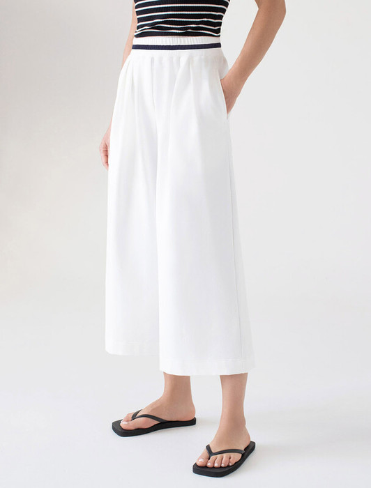 Vilatte Укороченные широкие брюки из эластичного футера двухнитки D44.141 белый