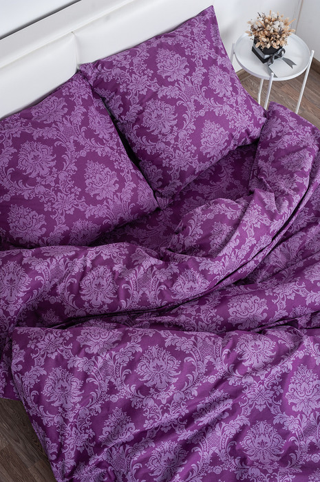 ВЛАДЛЕН Постельное бельё из поплина жаккард с простынёй на резинке - Баклажан