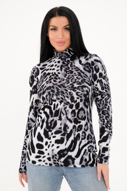 Водолазка из вискозы с высоким воротом и леопардовым принтом - это универсальный и модный элемент гардероба с ноткой экзотики и шарма.