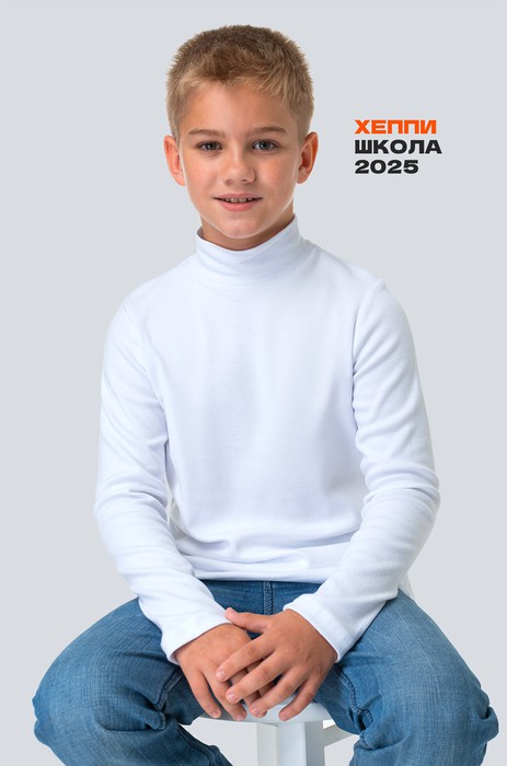 Белая водолазка для мальчиков и мальчиков подростков выполнена из 100% хлопка, который дарит запредельную мягкость и приятные прикосновения.