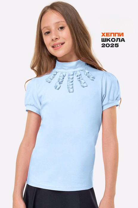 Индивидуальность в рамках школьных правил! Детская водолазка из мягкого и приятного к телу хлопка станет идеальным дополнением к школьной форме для девочки и девочек-подростков. Аккуратные рюши, короткие рукава-фонарики и базовый голубой цвет – важные детали, которые делают блузку для детей красивой и опрятной.