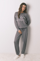 womensecret langer Pyjama aus Strick- Mickey-Strick