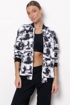Куртка –бомбер свободного прилегания на металлической молнии. Линия плеча спущена. Воротник, пояс и манжеты рукавов выполнены из рибаны. Предусмотрены функциональные карманы.
