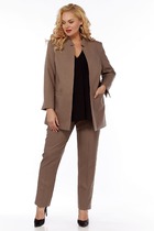 Однобортный жакет полуприталенного силуэта, на подкладке, с плечевыми накладками. Воротник пиджачного типа с отложными лацканами. По переду центральная застежка на петли и пуговицы и прорезные карманы с клапаном, талиевые вытачки и рельефы. Полочку жакета украшает съемная декоративная рюша на пуговицах. Низ бортов закругленной формы. Спинка со средним швом и рельефами. Рукав втачной двухшовный длинный.