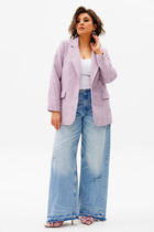 Стильный жакет выполнен из фактурного полотна цвета мандарин. Характеристики: укороченный жакет, подкладка, воротник стойка, застежка центральная - молния, рукав свободного кроя спущен, низ рукава заканчивается резинкой, спинка цельнокроеная, низ изделия на резинке. Длина по спинке 51 см, длина рукава от края горловины 81 см.