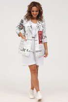 Жакет прямого кроя, с баской по нижней части изделия. Выполнен из костюмной ткани. Характеристики: брендированая подкладка, отложной воротник, застежка центральная на пуговички, рукав втачной. Длина по спинке от края горловины 61 см, длина рукава 83 см.