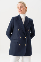 Двубортный жакет на подкладке, прямого силуэта.. Жакет выполнен из плотной пальтовой ткани. Обработаны прорезные карманы по переду. Рукава втачные одношовные, обработаны шлицей
