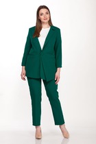 Жакет однобортный,  на подкладке, выполнен из эко-замши. Обработан молнией разъёмной молнией по центру переда, закрывающейся планкой с пуговицами. Воротник тложнй, рубашечного типа. Рукава втачные одношвные, прямые. По  передним половинкам обрабтаны накладные карманы с клапаном.
