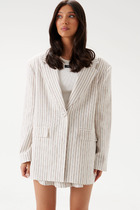 Жакет женский удлиненный, из трикотажной ткани, перед жакета на подкладке, полуприлегающего силуэта с центральной бортовой застежкой на пуговицы до линии перегиба лацкана. Спереди рельефные швы от плечевого шва, отрезной бочок и карман с клапаном. Спинка с рельефами от плечевого шва. Рукав втачной, двухшовный. Воротник пиджачного типа. Длина по спинке 70, длина рукава 61.