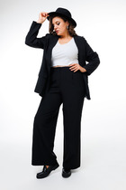 Женский жакет-блуза, прямого силуэта, из хлопковой ткани. Горловина округлой формы, застежка центральная на притачную планку, застегивается на металличесские кнопки. В отрезной части переда обработаны карманы. Спинка цельная. Низ фигурный. В боковых швах разрезы. Рукав втачной, двухшовный, с притачной манжетой, 3/4. Изделие без подкладки. По швам проложены отделочные строчки. Длина рукава 46 см, длина по спинке 86 см.