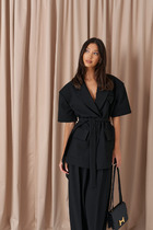 Жакет женский полуприлегающего силуэта с декоративным подрезом по переду полочки, рукав втачной 3/4 с разрезом в локтевом шве, без воротника застежка на крючок,карманы листочки обработаны в подрезе.