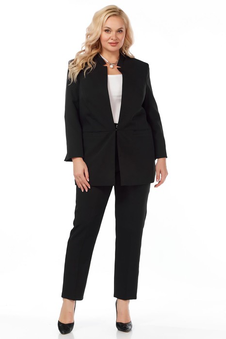 Жакет женский полуприлегающего силуэта с декоративным подрезом по переду полочки, рукав втачной 3/4 с разрезом в локтевом шве, без воротника застежка на крючок,карманы листочки обработаны в подрезе.