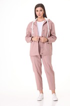 Жакет из джинсовой ткани с велюровым эффектом полуприлегающего силуэта с втачным двухшовным рукавом с лампасом из отделочной ткани. Полочка с центральной застежкой на петлю-пуговицу, вытачкой и имитацией кармана с клапаном. Жакет с отрезным бочком, переходящим на полочку и на спинку. Воротник пиджачного типа с отрезной стойкой. Рукава жакета на подкладке.