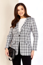 Жакет женский "Плеяна" выполнен из твидовой ткани с блестящей нитью. Жакет на подкладке полуприлегающего силуэта, воротник отложной, по борту лацканы, низ борта закругленный, застежка однобортная на три пуговицы. По полочке - рельеф и накладной карман, по краю кармана трепка. Края воротника, лацканов и борта обработаны трепкой. По спинке - рельефы, рукав втачной двухшовный. Жакет нарядный отличный вариант для праздников и повседневной носки. Нарядный с легкой люрексовой ниткой добавит вам нарядности и элегантности!