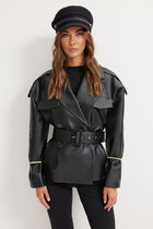 На левом лацкане вышивка-логотип в контрастном цвете. Низ и борта имеют открытые края (эффект необработанного шва), укреплены дополнительной строчкой. Жакет без подкладки.