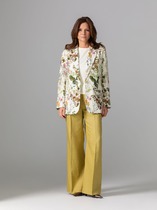 Жакет женский прямого силуэта с центральной бортовой застежкой на петли и пуговицы. По переду обработаны нагрудные вытачки, рельефы, справа прорезной карман с клапаном и листочкой (клапан декорирован нашивкой). Слева расположена настрочная «вытрепанная» деталь с накладным карманом и клапаном, застегивающимся на петлю и пуговицу. Спинка с «вытрепанной» кокеткой, на которой расположена декоративная нашивка. Нижняя часть спинки с отстрочными «вытрепанными» рельефами. Рукав длинный 2-х шовный отстрочной, с имитацией шлицы, декорированной пуговицами. Воротник пиджачного типа с отрезной стойкой. Воротник, подборт и декоративная «вытрепанная» деталь с накладным карманом и клапаном выполнены из ткани-компаньона. Декоративные элементы и фурнитура могут отличаться от заявленных на фото. Цвет материала может отличаться по тону в зависимости от настроек вашего монитора!