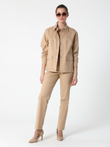 Жакет оформлен тремя декоративными пуговицами, которые подчеркивают лаконичный дизайн, и дополнен накладными карманами — практичный элемент, сохраняющий аккуратный вид даже при активном использовании. Отсутствие подкладки делает эту модель универсальной для теплых дней и переходных сезонов, а свободный крой обеспечивает свободу движений.