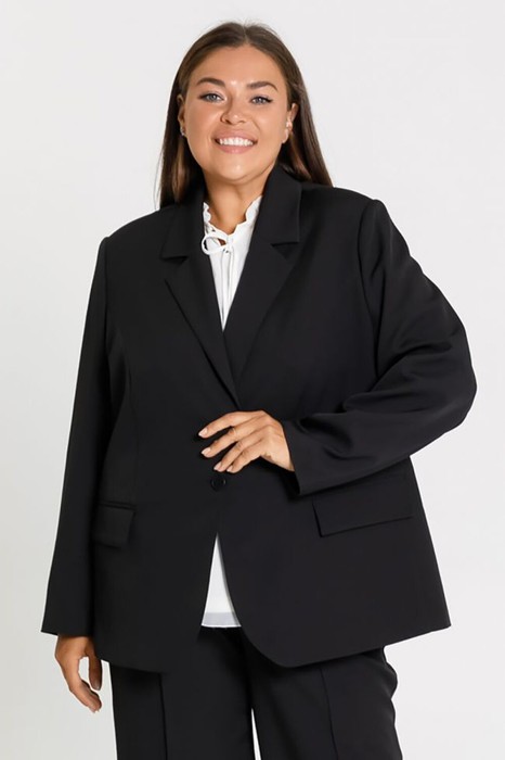 Стильный жакет полуприлегающего силуэта из костюмной ткани "Барби босс", с подкладом, длиной за линию бедер. V-образная горловина с отложным воротником. Модель с центральной застежкой на петли-пуговицы. Втачные длинные рукава. Прилегание по фигуре за счет вертикальных рельефов переда и спинки. По переду удобные прорезные карманы в рамку. Низ ровный. Жакет станет отличным дополнением как делового, так и повседневного гардероба. Жакету гармоничный комплект составят брюки 1401 и 1352.