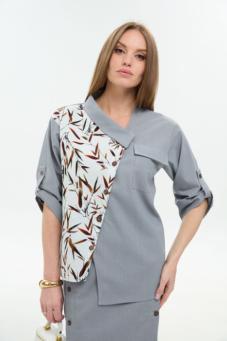 Жакет NIKVA н902-14 серый и листья мультиколор