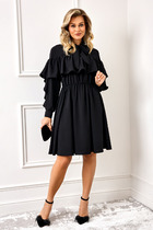 Повседневный жакет прямого силуэта, выполнен из эластичного микровельвета. Жакет по переду с центральной застежкой на кнопки, притачными кокетками и двумя фигурными накладными карманами. По швам притачивания кокеток отделочные строчки. Спинка целая. Горловина переда и спинки с втачным отложным воротником, с цельнокроеной стойкой. Рукав втачной длинный с притачным манжетом по низу. Манжеты застегиваются на две кнопки. Длина рукава от плеча в 48 р-ре – 64 см. в 64 р-ре – 68 см., ширина рукава по низу в 48 р-ре – 24 см. в 64 р-ре – 28 см. Жакет без подклада. Длина изделия по спинке в 48 р-ре – 59 см. в 64 р-ре – 66 см.