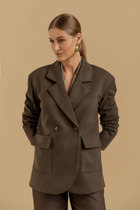 Жакет со шнуровкой с расширенной линией плеч. Детали: жакет полуприлегающего силуэта, рельефы, пиджачный воротник, застежка на две петли и пуговицы, функциональные карманы, жакет на подкладке. Жакет также можно зашнуровать по бокам.