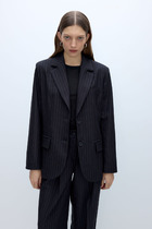 Детали: жакет свободного покроя и полуприлегающего силуэта, двубортная застежка на петли и пуговицы, отрезные бочки, пиджачный воротник, функциональные карманы, жакет на подкладке.