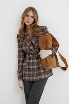 Двубортный, полуприлегающего силуэта. Средний шов спинки со шлицей. Воротник пиджачного типа с углублённой застёжкой. Передняя часть с карманами в рамку и клапанами. Втачной двухшовный рукав. Полностью дублирован с подкладкой. Локтевые накладки из экокожи