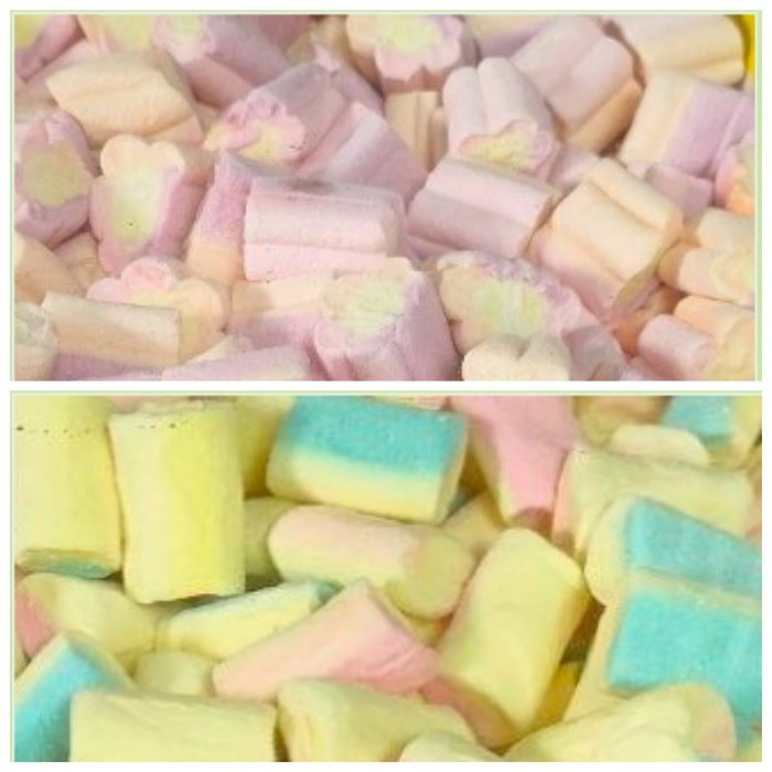 СОСТАВ: сахар, сироп глюкозы и фруктозы, вода, желирующий агент, пищевой желатин, ароматизаторы идентичные натуральным, кукурузный крахмал, красители (куркумин, синий блестящий FCF).Маршмеллоу воздушное, с приятным вкусом и ароматом не оставит равнодушным никого. Прекрасное дополнение к кофе.