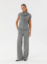 Жилет женский прилегающего силуэта, с вырезом горловины (каре). Застежка по переду на 4 пуговицы. На передних половинках действующие карманы с листочкой. Перед жилета на подкладке.