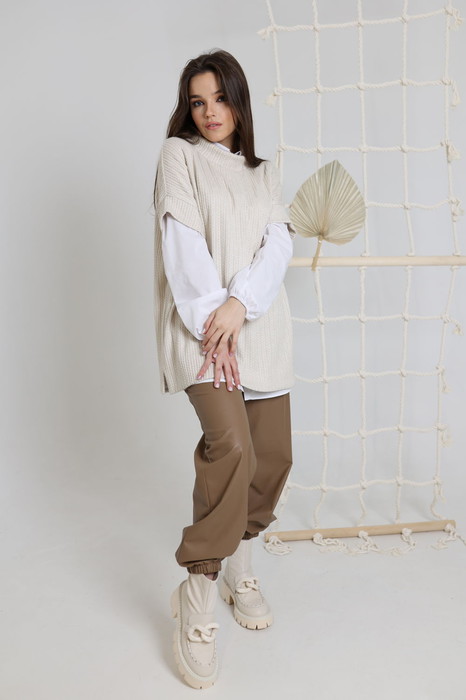 Трендовая жилетка- туника в Стиле "бохо" из красивого приятного структурного трикотажа с разрезиками по бокам.