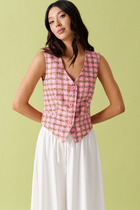 Жилет однобортный. Выполнен из текстильного полотна в белую полоску. Прямой крой, подкладка, воротник отложной с широким лацканом. По переду два функциональнных кармана. Застежка центральная на петли - пуговицы. Длина по спинке 80см.