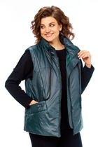 Жилет укороченный, выполнен из стеганной трикотажной ткани серого цвета. Характеристика: жилет А-силуэта, вортник стойка, капюшон цельный с жилетом, центральная застежка на молнию, скрывается под планкой на кнопках, боковые карманы на молнии, по низу изделия резинка с фиксаторами, брендированный подклад, спинка цельнокройная. Длина изделия от края горловины по спинке 58см.