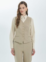Жилет выполнен из матовой плащевой ткани, простеганной с изософтом. Жилет прямого силуэта, длиной миди. Спереди застежка на молнию и кнопки на планке. Карманы прорезные, застегивающиеся на молнию. Спинка со средним швом. Воротник-стойка. Капюшон съемный, крепится на пуговицы. В комплект входит съемный ремень из широкой эластичной тесьмы с пряжкой-карабином. Жилет на притачной по низу подкладке.