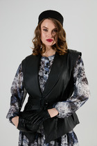 Жилет прямого свободного силуэта из теплой ткани "барашек". Перед с настрочными карманами. Застежка на 3 петли и пуговицы. Жилет на подкладке. Длина жилета - 52 см.