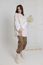 Жилет свободного силуэта из объемной стеганой ткани. Жилет на подкладке. Спущенная линия плеча, застёжка на кнопки. По переду широкие накладные карманы с клапаном с боковым входом для удобства. В комплекте идёт пояс из основной ткани.