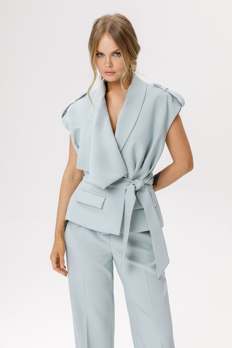 Приталенный жилет с асимметричным воротником.