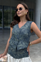 Жилетка женская из трикотажной ткани "лапша". В боковых швах расположены разрезы. Пояс входит в комплект.