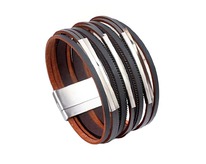 Браслет, кожа , сталь, ALB-ИМ55к/ч